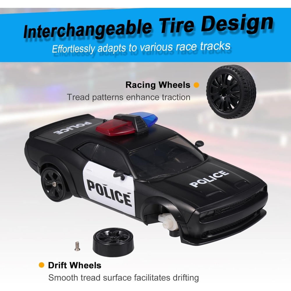Comes with both drift and racing tires that can be swapped easily, allowing kids to switch between different terrains and driving styles.