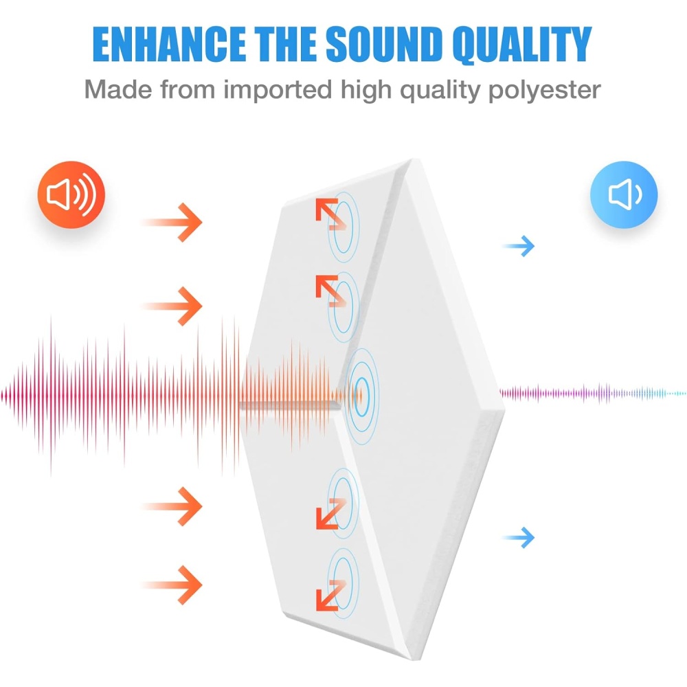 12pcs Hexagon Self-Adhesive Acoustic Panels - White 30cm
