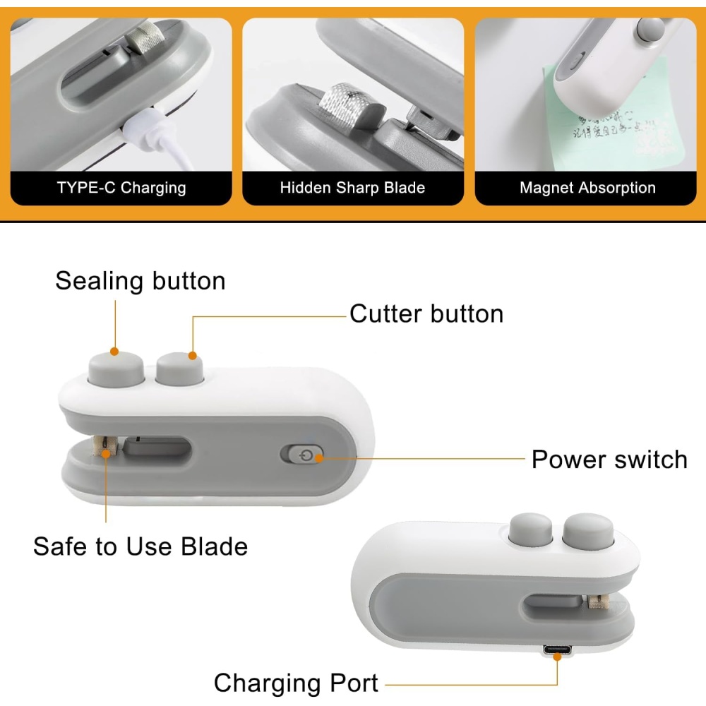 Keep your snacks fresh and your food securely sealed with this compact and rechargeable 2-in-1 Bag Sealer. Designed for convenience and efficiency, it offers instant heat sealing, a built-in cutter, and portable use—making it the perfect tool for home, travel, camping, and everyday storage needs.