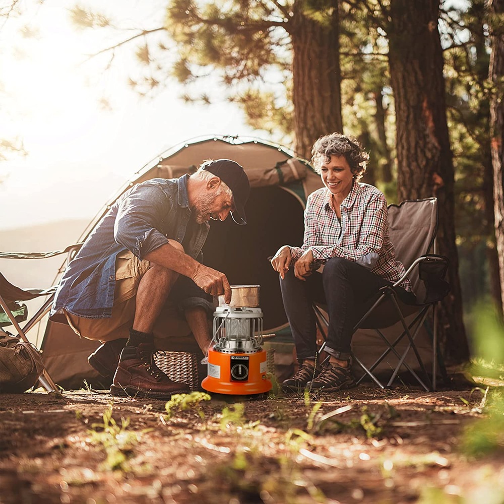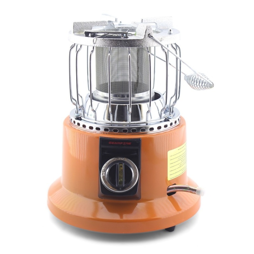 Combines a powerful gas heater and a cooker in one compact device.