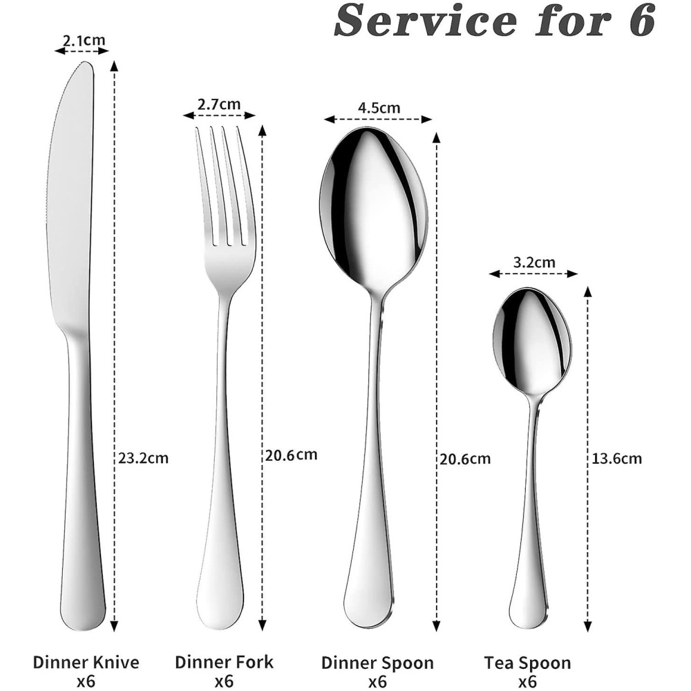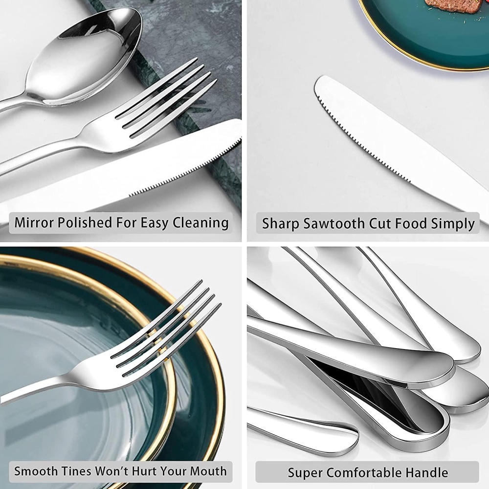 Includes spoons, forks, and knives to serve 8 people comfortably