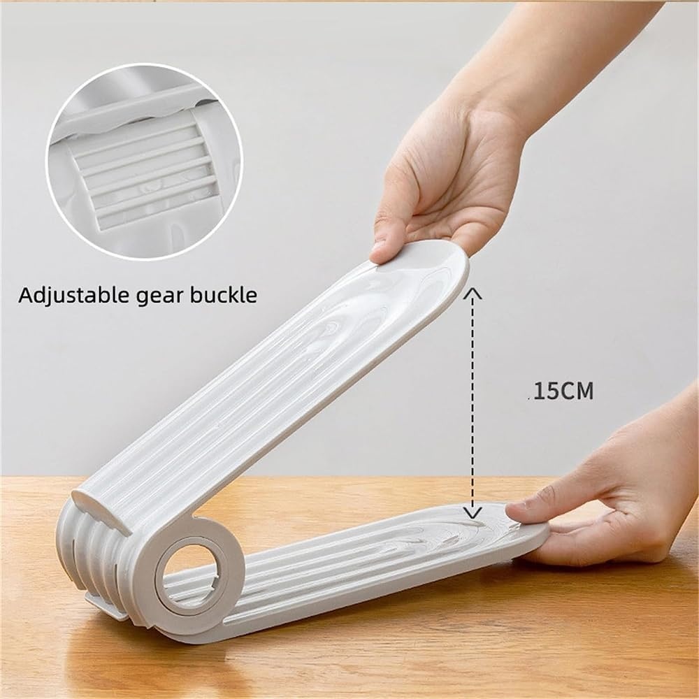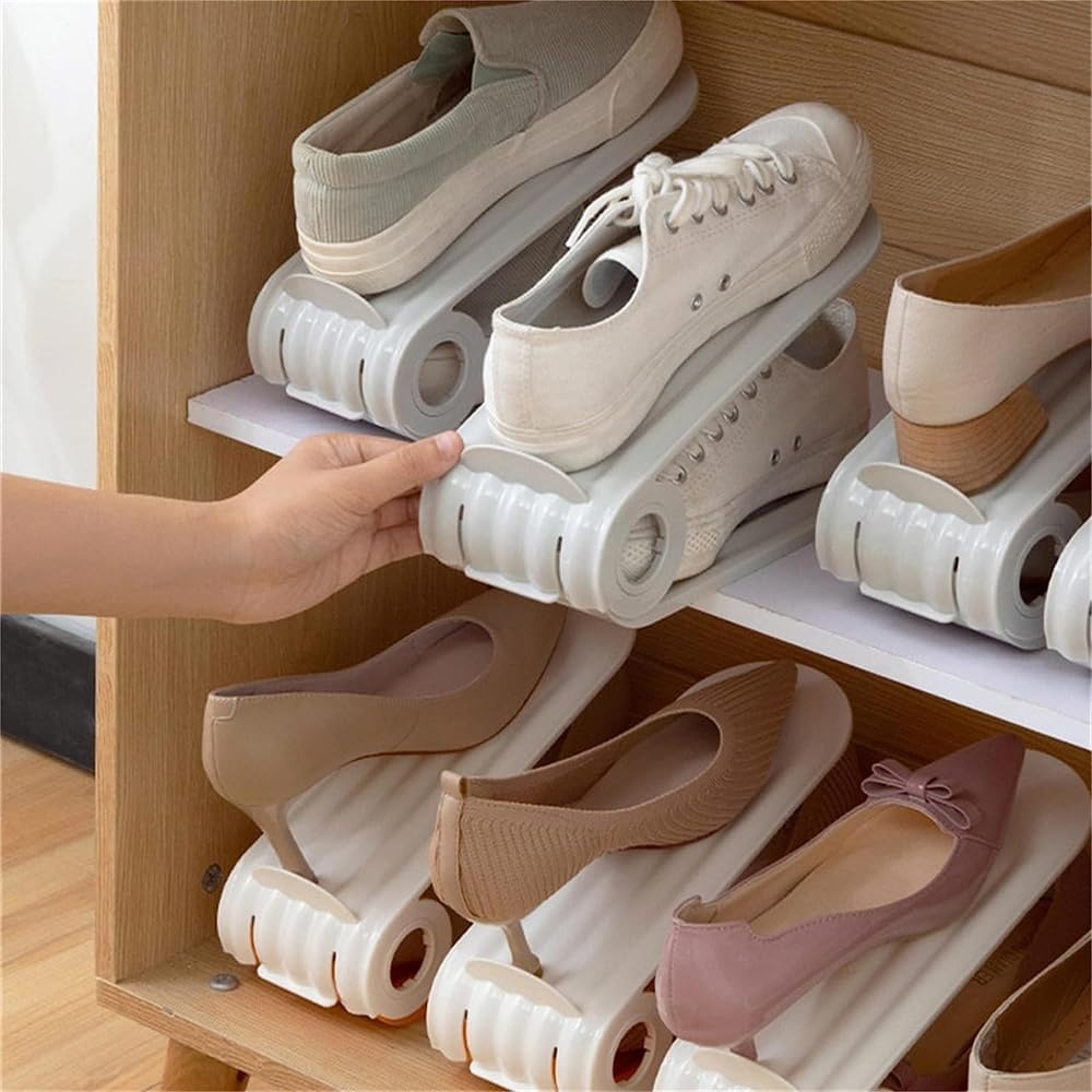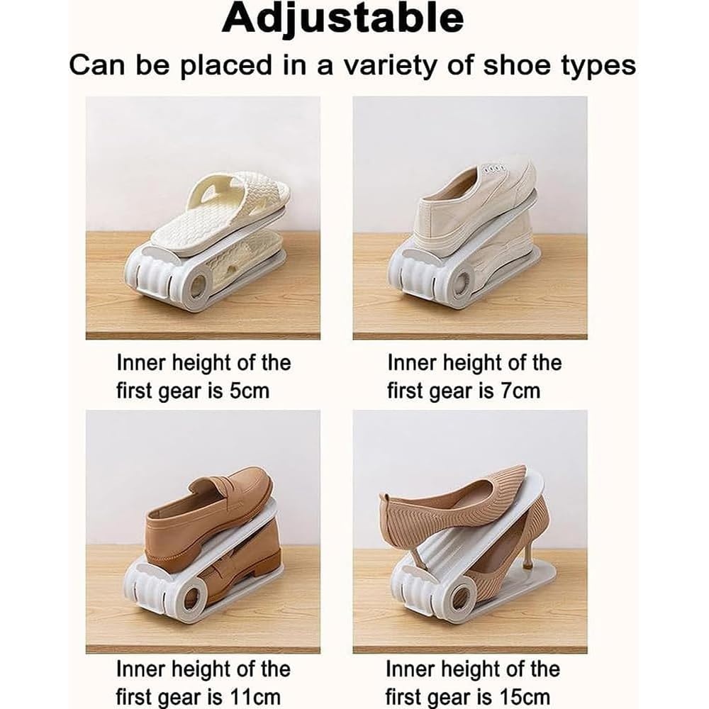 •  Easy to Clean :Made of eco-friendly pp material, this no assembly required double layer stack shoe rack is light and durable. Wardrobe shoe rack can be easily cleaned with water and soap for longer use. This shoe slot organiser is ideal for you. It is perfect for placing in the wardrobe, entryway or under the bed.