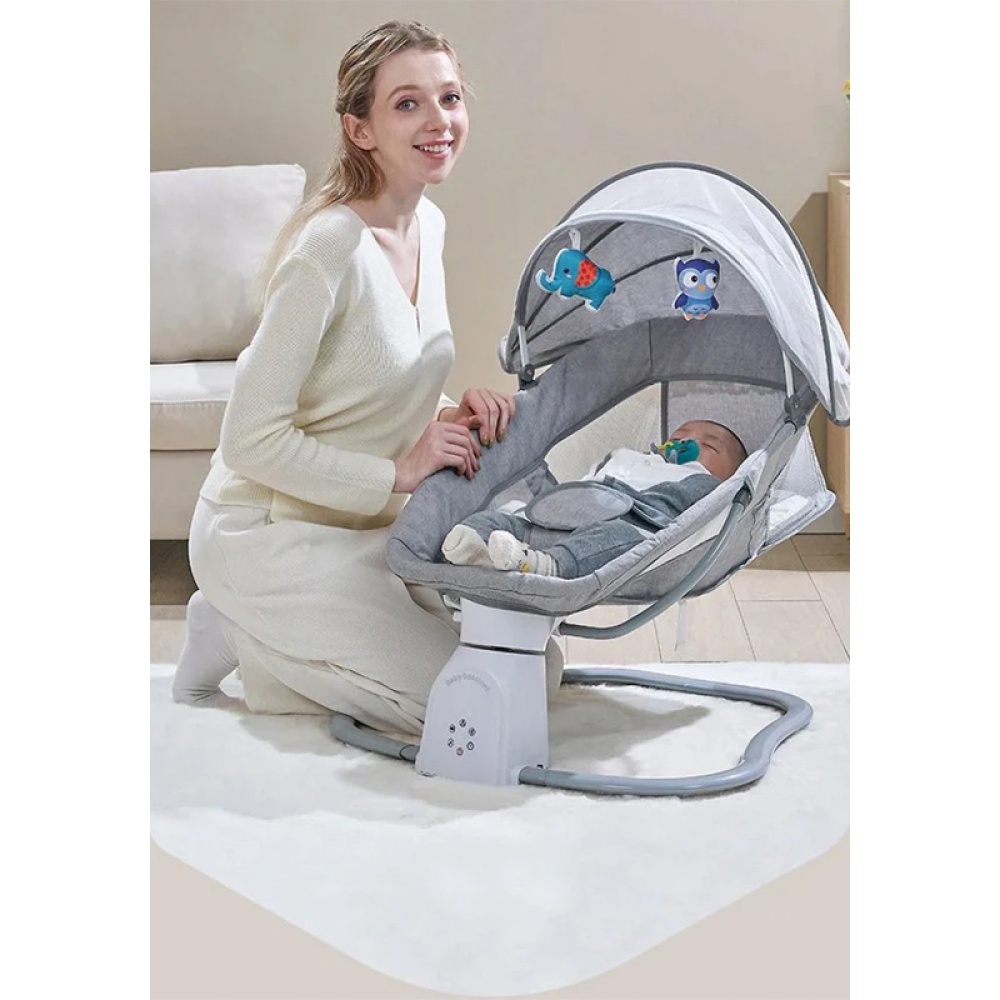 The chair can rotate left and right, mimicking a gentle rocking motion that soothes the baby and simulates a parent’s natural cradle.