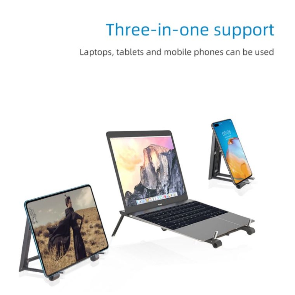 Compatible with laptops, tablets, and mobile phones—designed to support one device at a time with adjustable sizing.