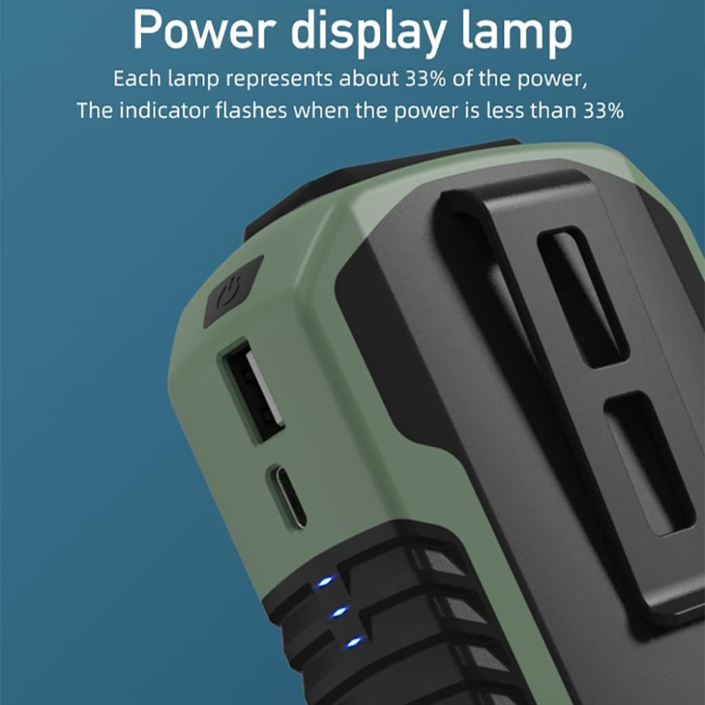 Equipped with a USB 5V/2A output, the fan doubles as an emergency mobile power bank to charge smartphones and other USB devices on the go.