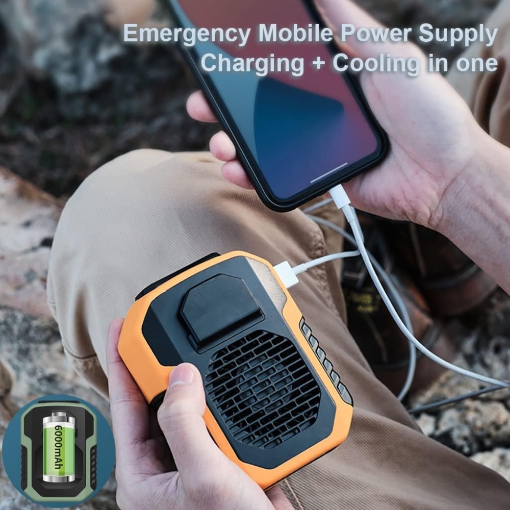3-in-1 Portable Neck & Waist Fan with Built-in 6000mAh Power Bank – USB Rechargeable