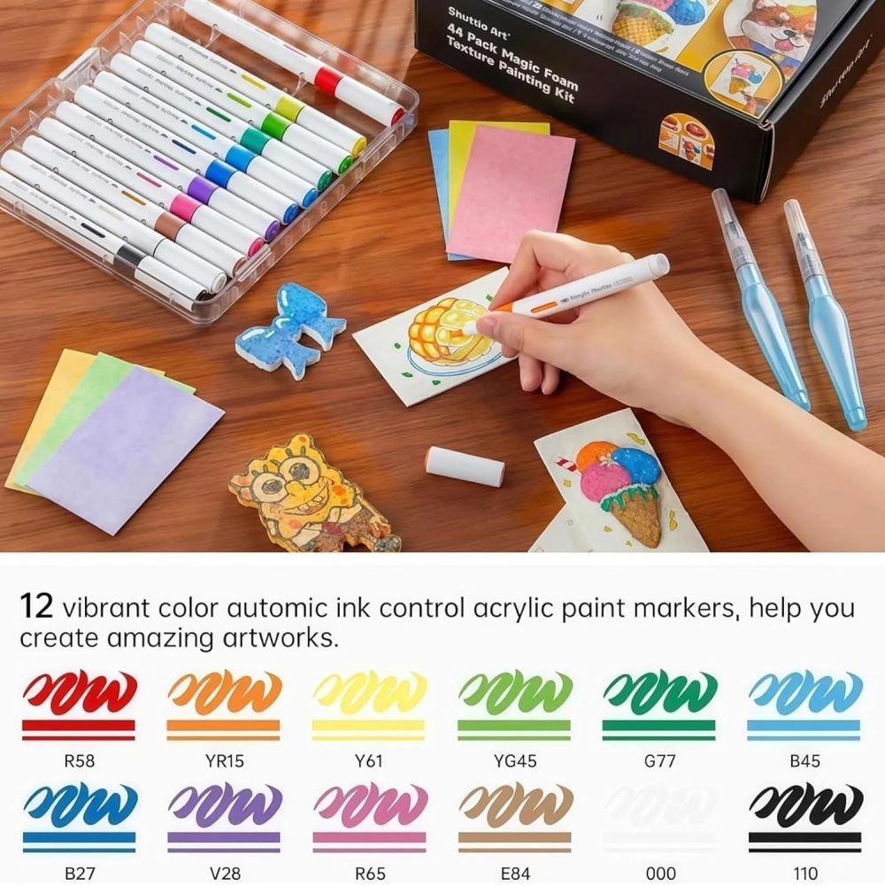 Paint, color, or stamp your design on the foam paper, then brush lightly with water. The foam expands with moisture, creating a magical 3D puff effect.