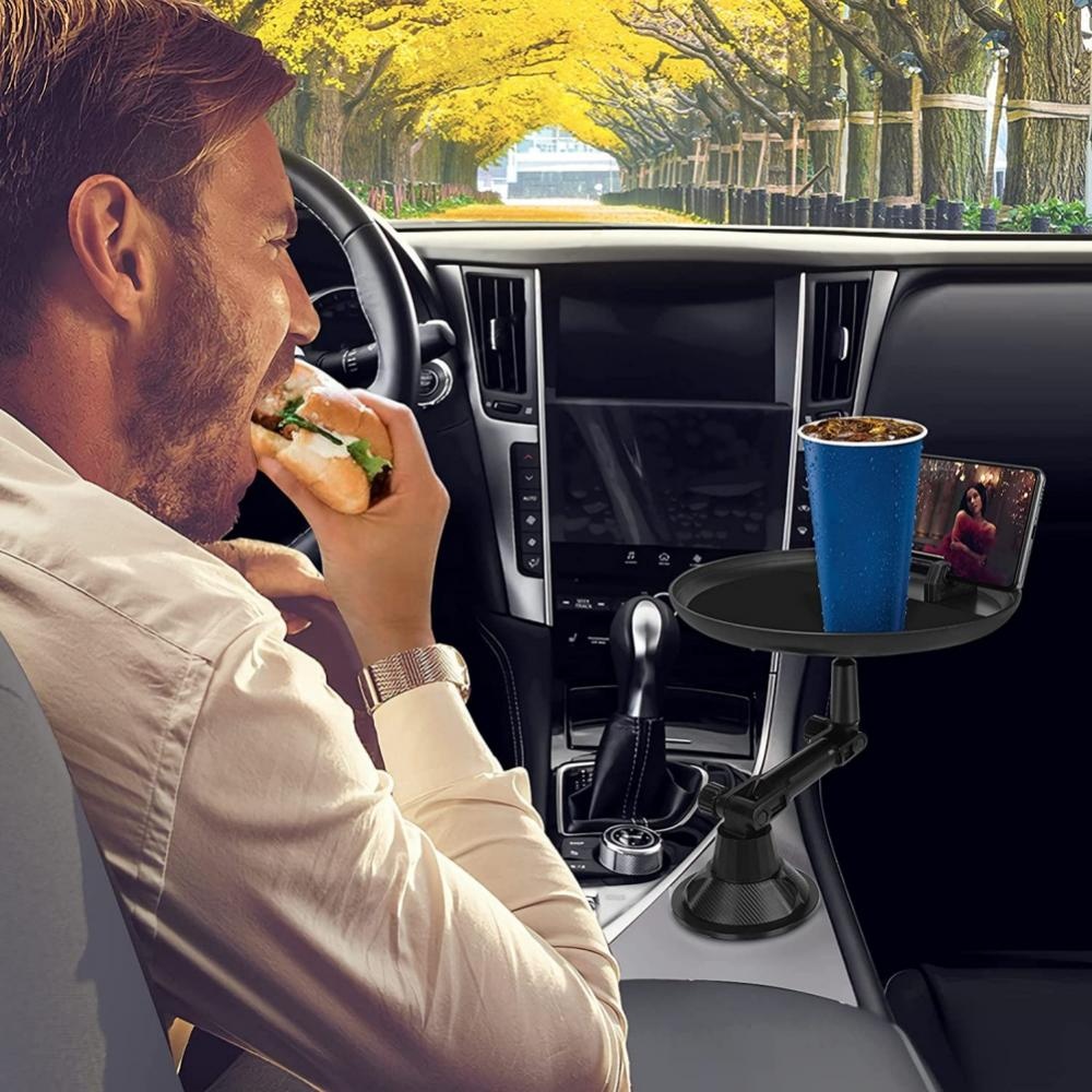 Convenient tray designed to fit most car cup holders and keep your items organized.