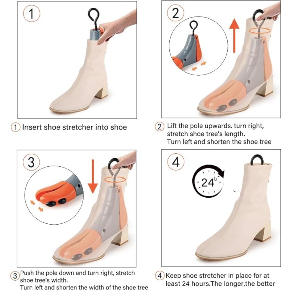 Easy to Use: Simply turn the metal handle clockwise to expand the toe box. Insert the stretcher into the shoe and leave it for over 24 hours. The high padding adjusts the upper for a better fit.