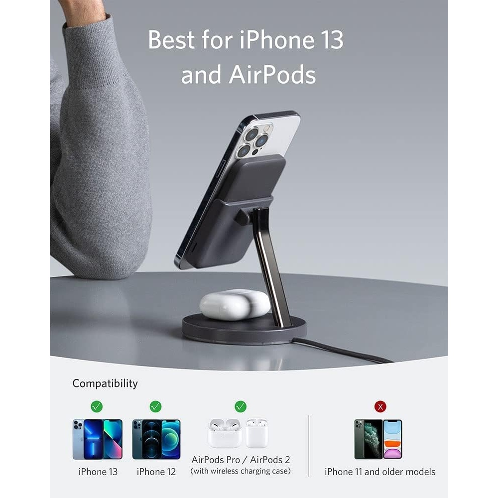 The Anker 633 MagGo 2-in-1 Wireless Detachable Charger combines convenience and powerful charging in one sleek design. With a magnetic charging stand and a portable detachable charger, it offers flexibility for your on-the-go needs. Stay charged with 7.5W fast wireless charging, and enjoy full protection for your devices with the exclusive MultiProtect safety technology.