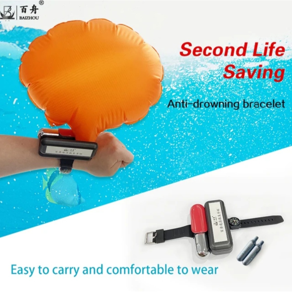 This innovative swim bracelet deploys an inflatable airbag in seconds during water emergencies, helping prevent drowning.