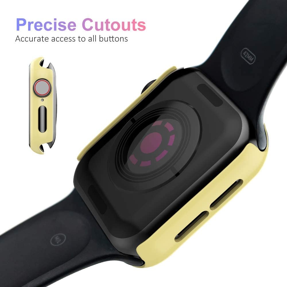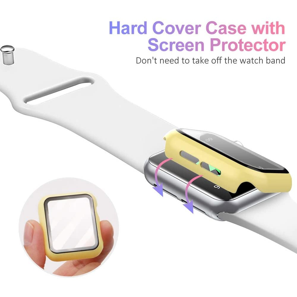 Includes tempered glass screen protector and vibrant yellow case for Apple Watch (38-44mm).