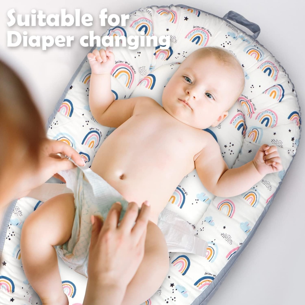 Give your newborn a safe, cozy, and supportive sleeping environment with this soft and breathable baby lounger nest. Designed with comfort, safety, and portability in mind, it’s perfect for co-sleeping, tummy time, or travel.