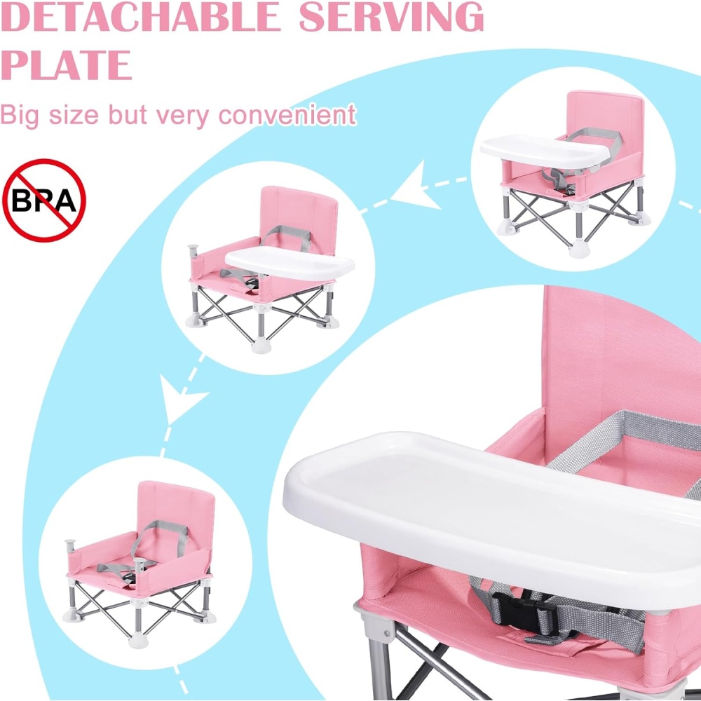 Made with high-quality, soft, and comfortable materials. The chair frame is crafted from rustproof aluminum alloy for long-lasting durability. The BPA-free tray is gentle and safe for your baby.