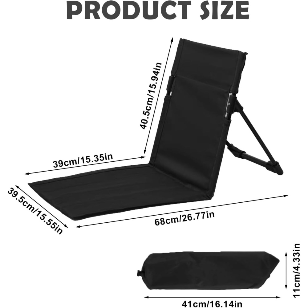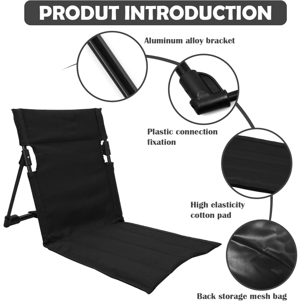 Design: Adjustable backrest, foldable, lightweight, portable