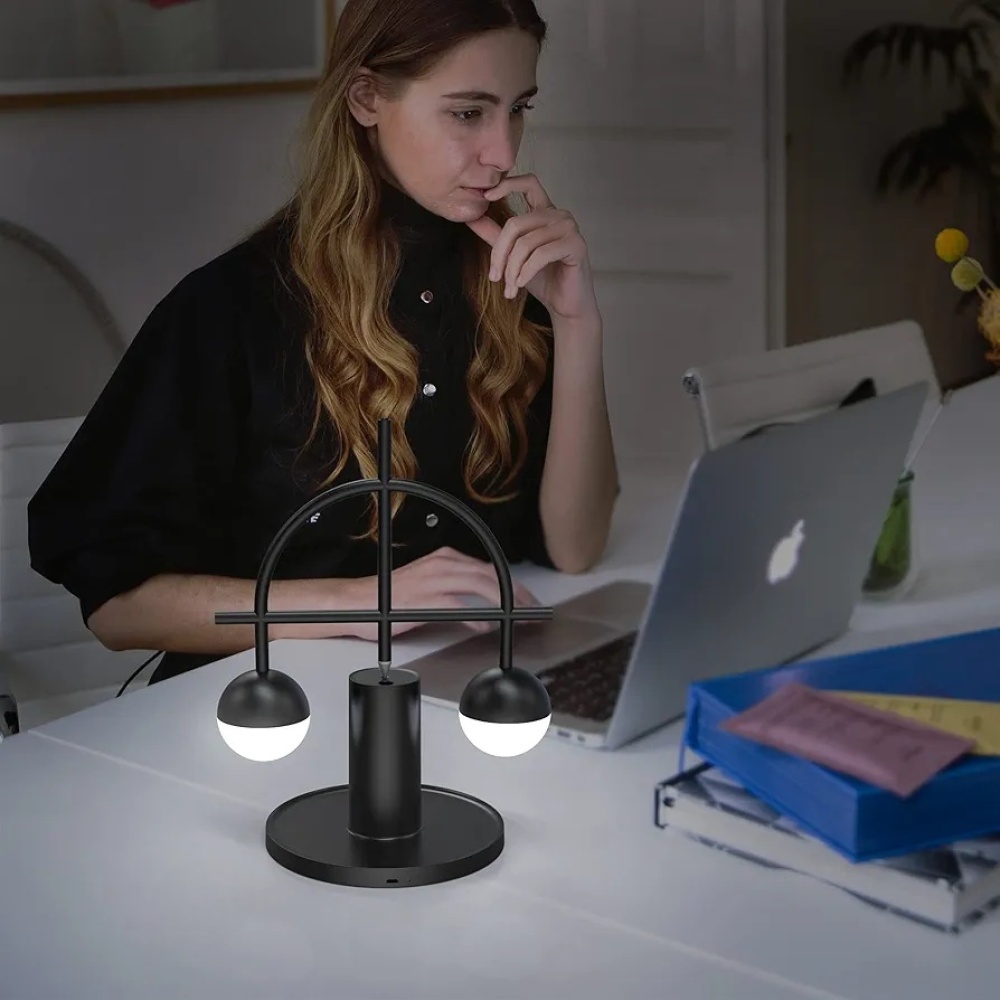 Turn the lamp on or off by balancing the two magnetic balls in mid-air.