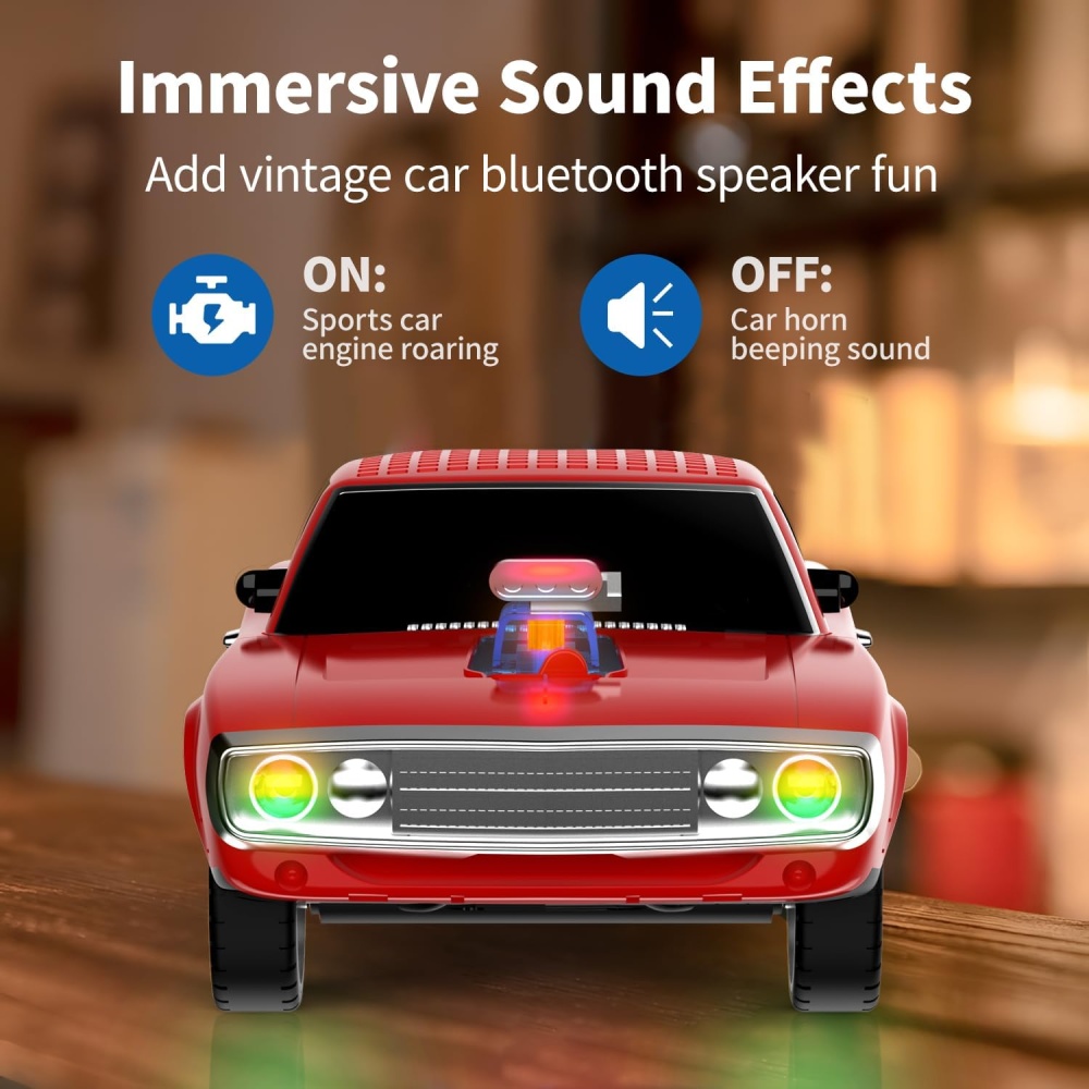 Turn it on and hear the "Vroom Vroom" engine rev for added fun.