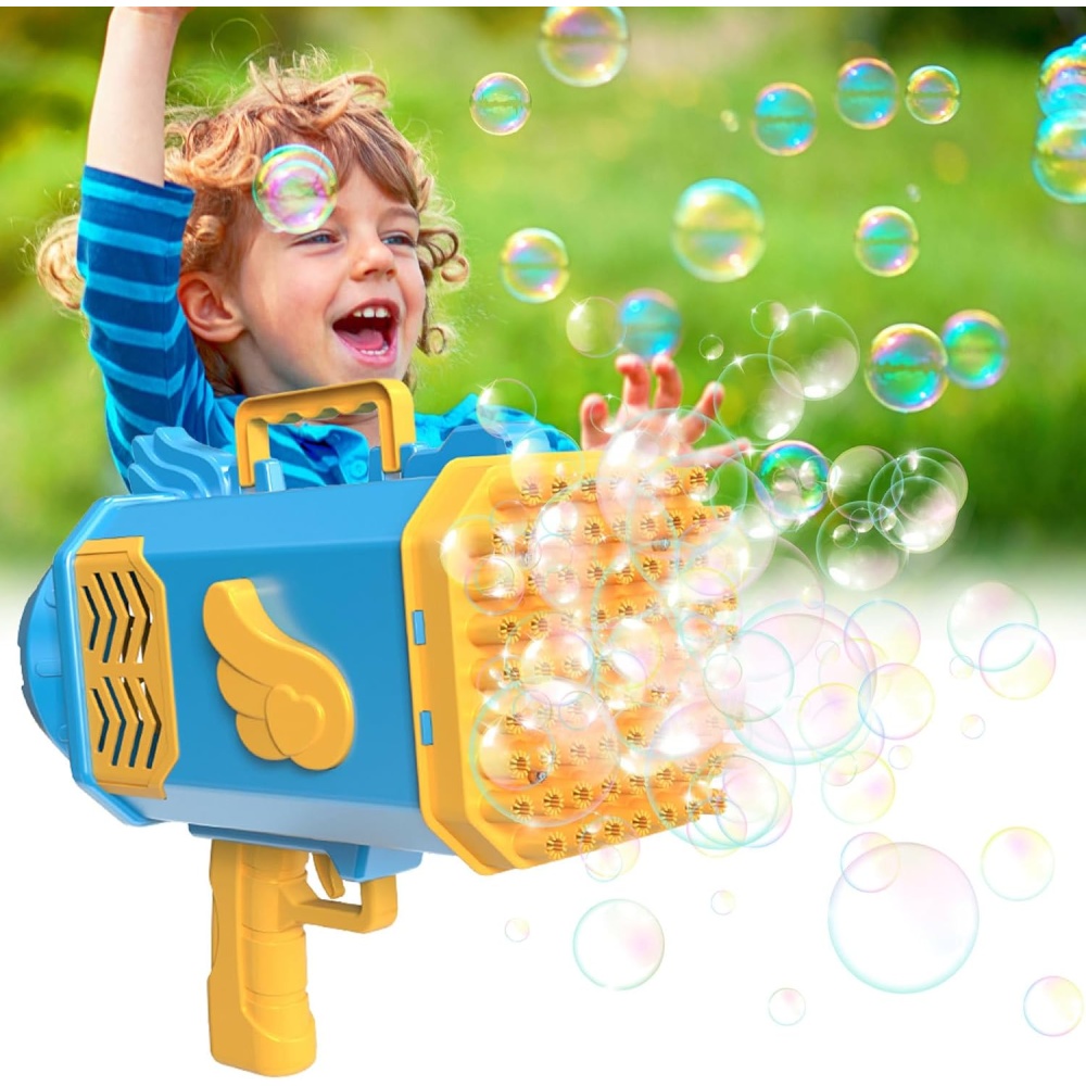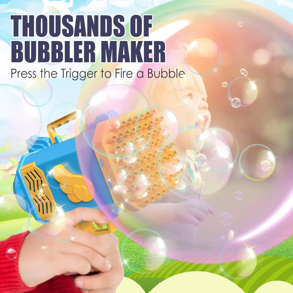 The Blower Bubble Gun Machine features 77 holes that release an impressive number of bubbles in a short amount of time, ensuring fun for everyone.