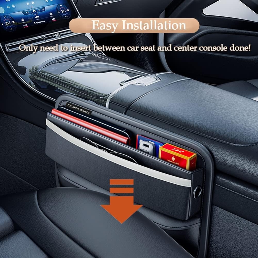 The black leather design complements any car interior, adding a touch of elegance. Whether you drive a luxury sedan or a compact car, this organizer enhances your car’s aesthetics while providing functional storage.