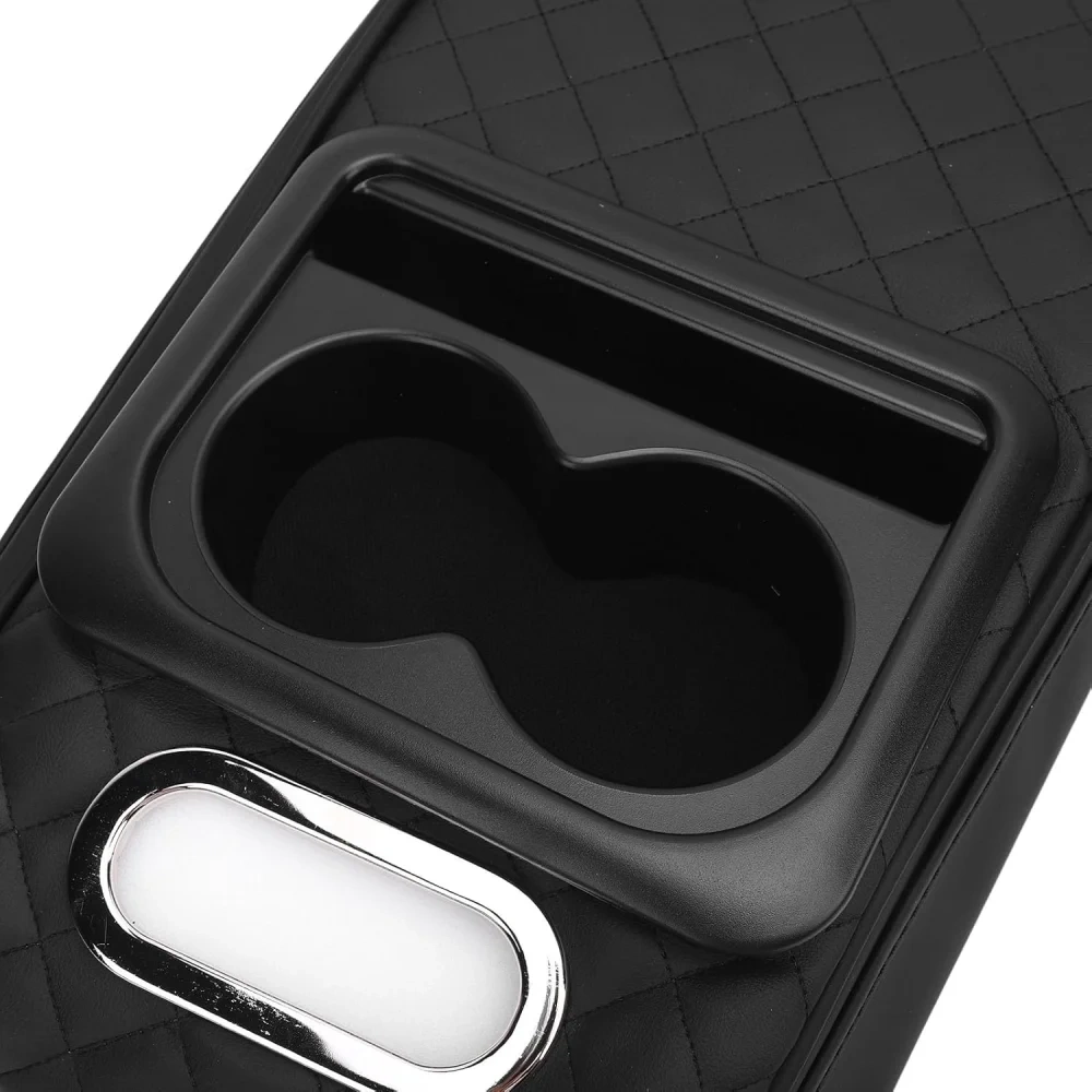 Features an extra cup holder, card storage slots, and a built-in tissue box.