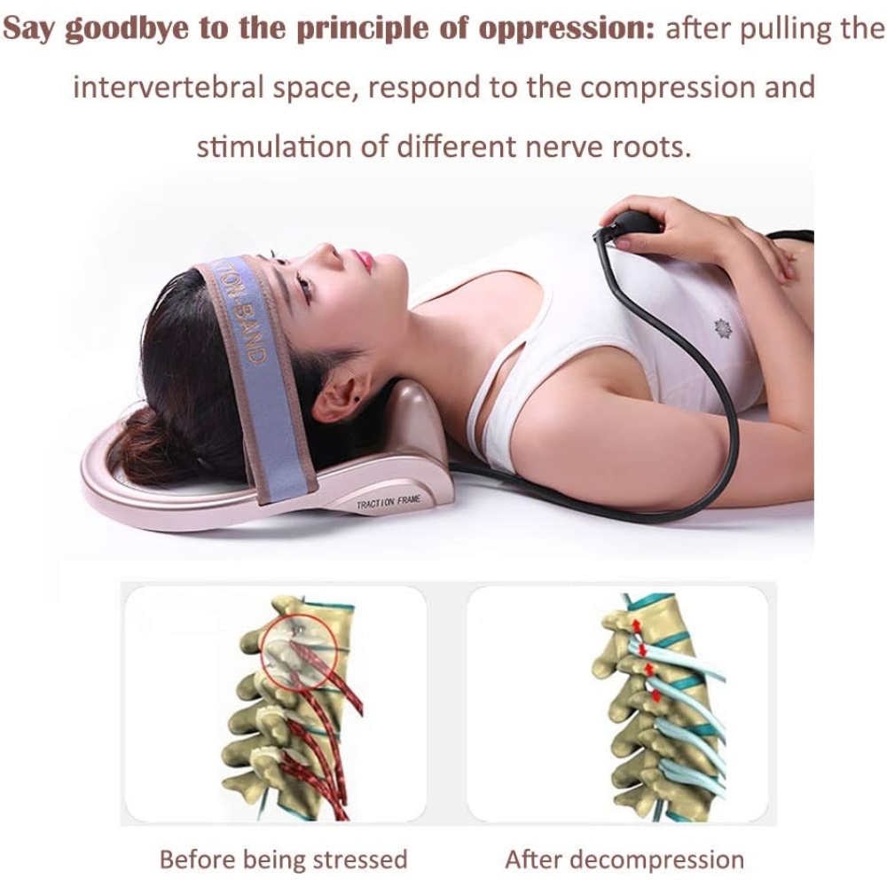 Helps alleviate neck pain by gently stretching cervical vertebrae and reducing pressure on discs.