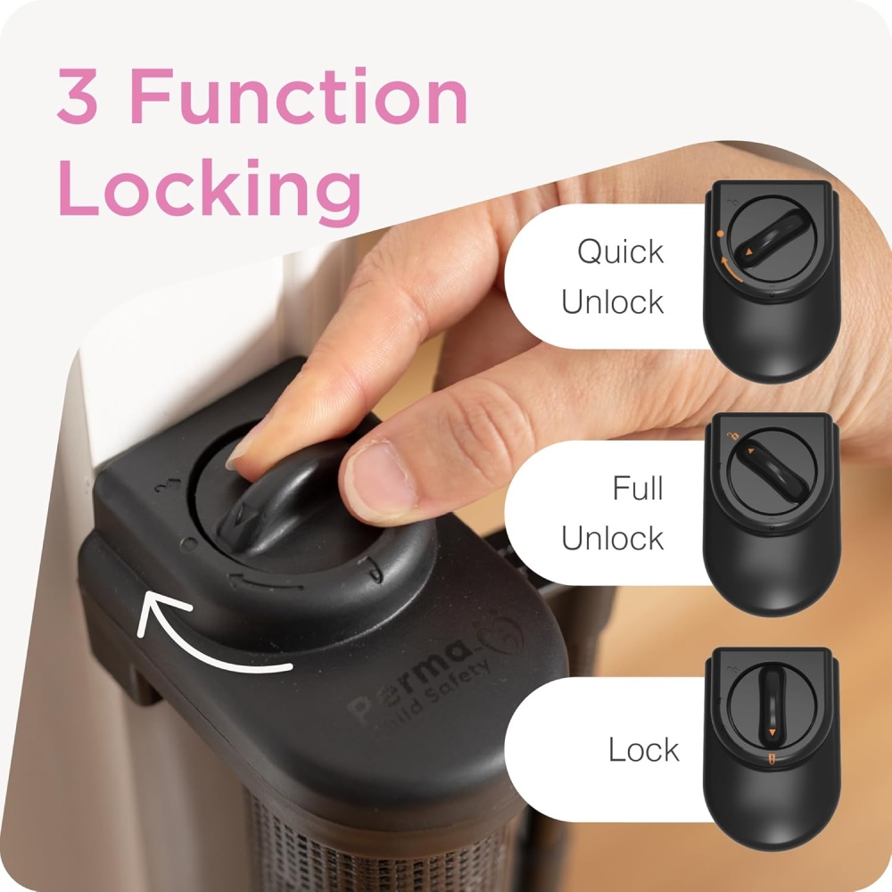 Easily lock or unlock the gate using one hand – perfect when holding a child or carrying items