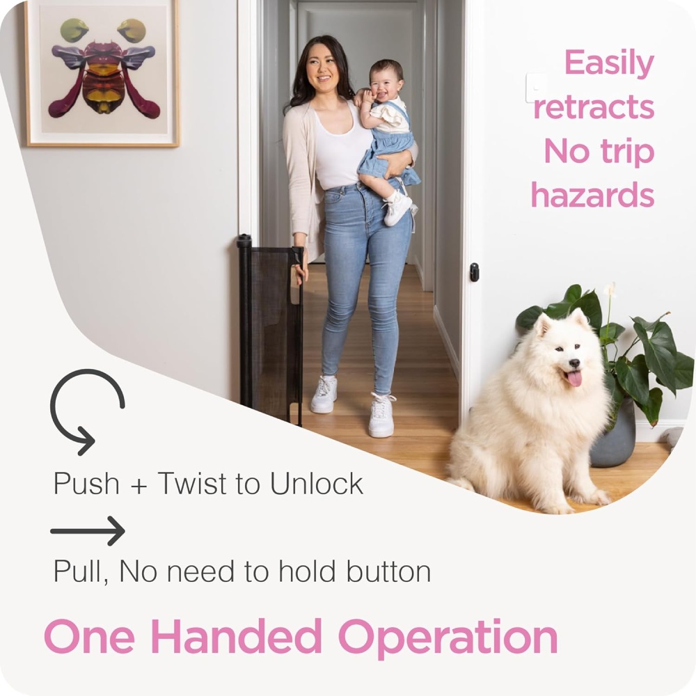 Ideal for doorways, hallways, and stairs – blocks babies and pets from entering or exiting safely