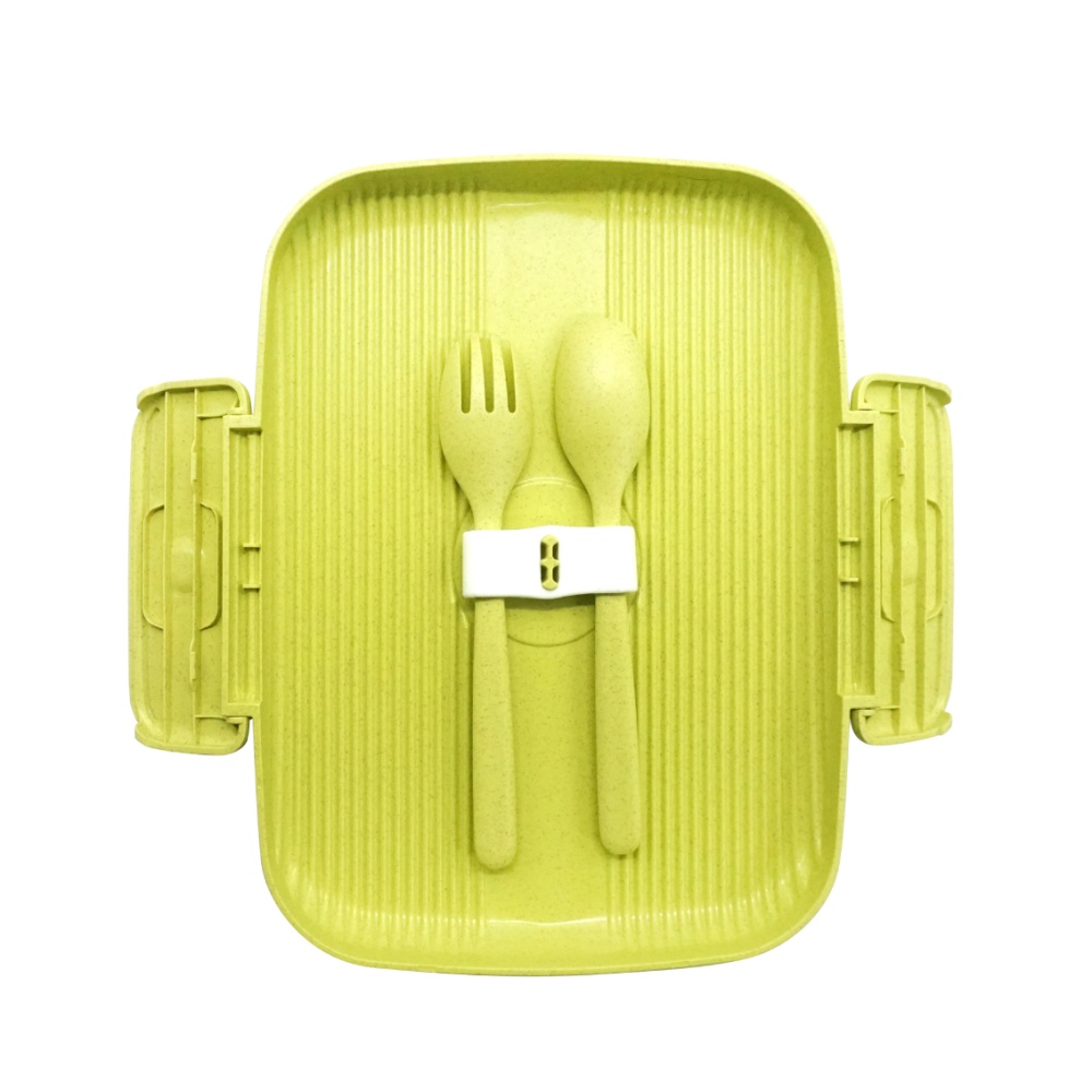 Comes with reusable cutlery stored neatly inside the lid for convenience.