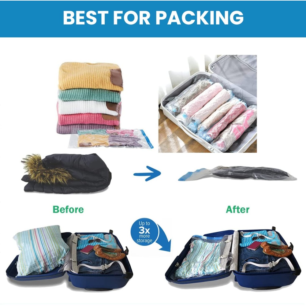 Travel-Friendly: If you're traveling, these vacuum bags are a must-have. They allow you to pack more in less space, ensuring you can bring everything you need without overstuffing your luggage.