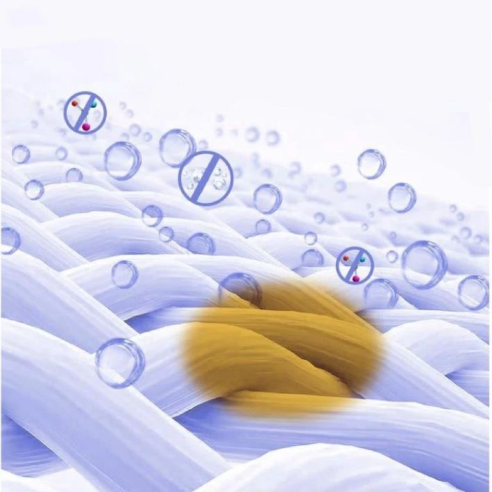 Specially formulated to tackle food stains, cosmetics, beverages (coffee, tea, milk, cola), oil, and ketchup.