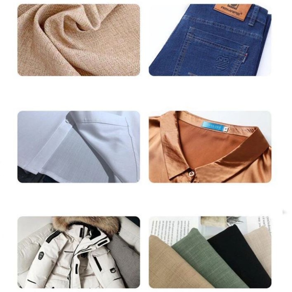 Fabric Compatibility: Cotton, linen, polyester, denim, blends, down jackets