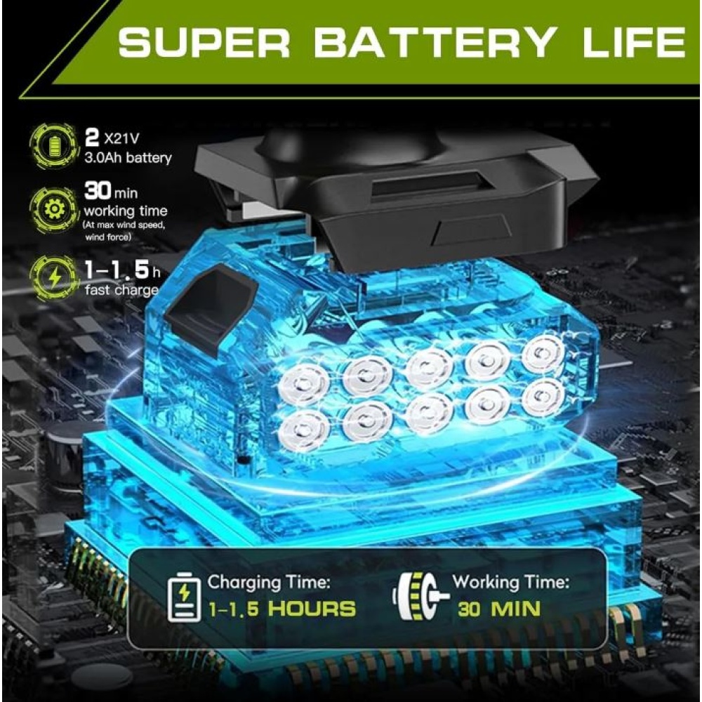 Comes with a charger and 2 × 21V 1500mAh lithium batteries for continuous use.