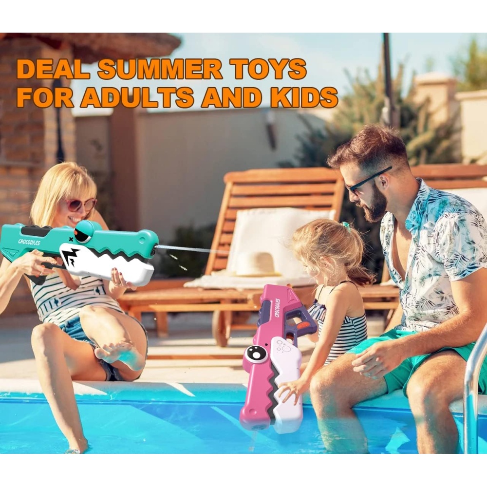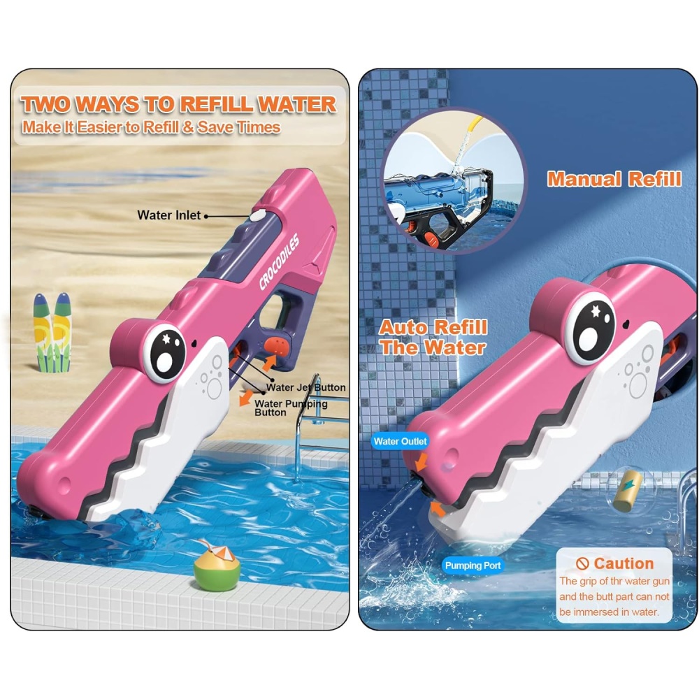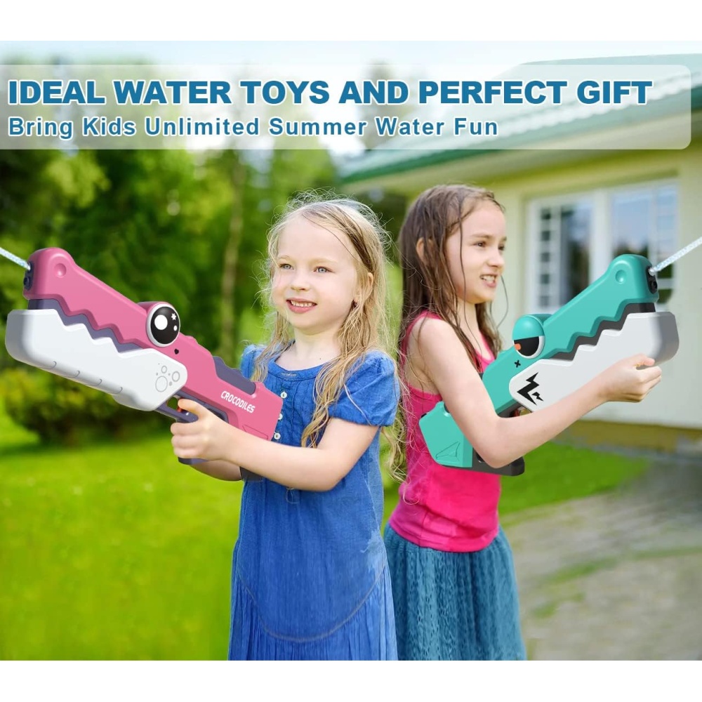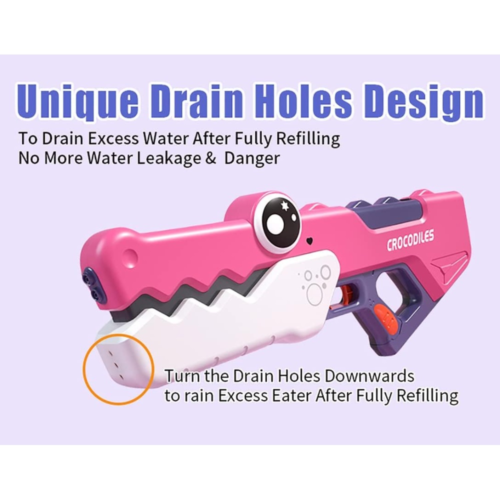 The crocodile-shaped design adds a playful element to water battles, while the pink color makes it visually appealing to kids. A perfect toy for outdoor summer fun and poolside activities.