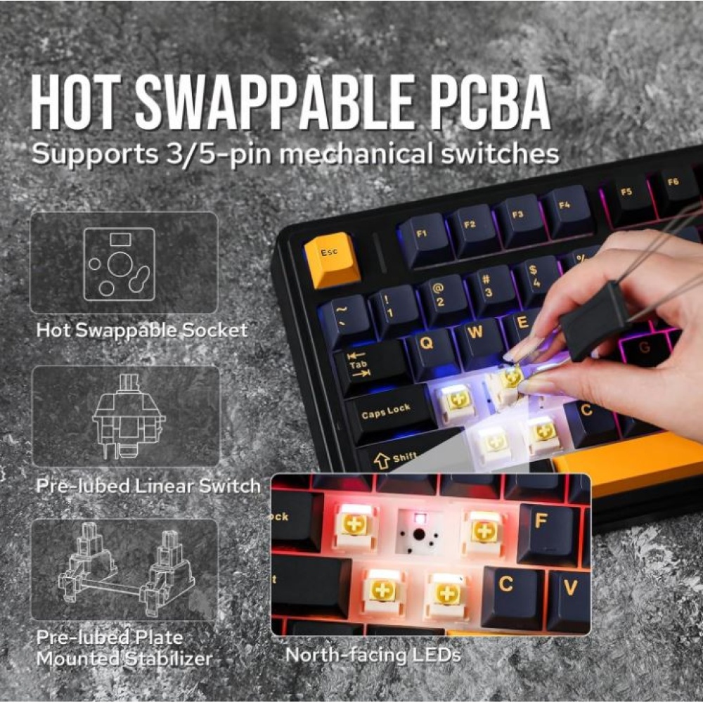 Pre-lubed Gateron Yellow switches offer smooth, responsive keystrokes.
