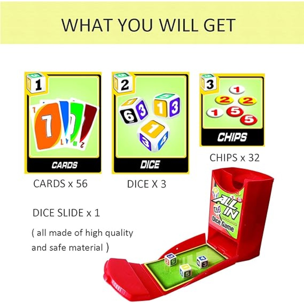 Combines the excitement of dice rolling with card strategy for a fun, quick, and engaging game.