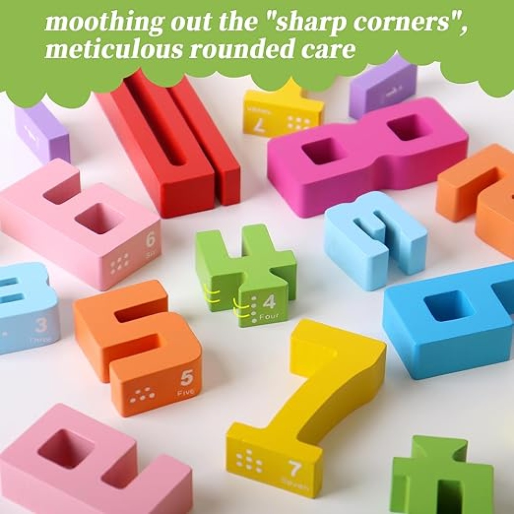 Colorful, well-crafted blocks enhance confidence, aesthetics, and color recognition. Each number has matching dots to support learning.