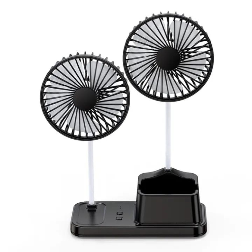 Double-Head Fan with Pen Holder – 10W Rechargeable