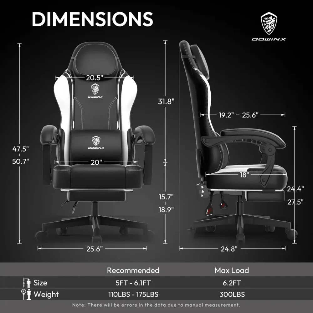 🪑 Dowinx Gaming Chair with Footrest – BLACK/WHITE