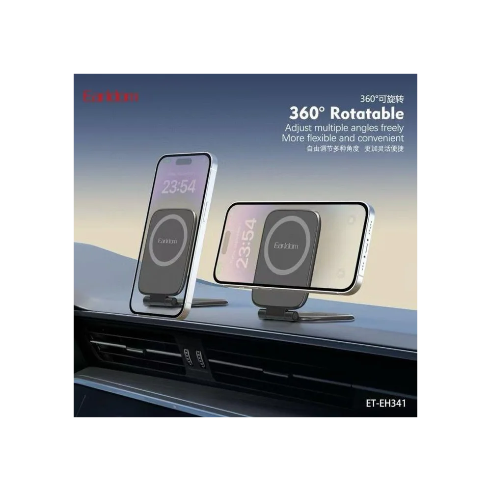 Enjoy hands-free convenience anywhere with the Earldom EH341 360 Degree Rotary Magnetic Phone Stand. Designed for multi-purpose use at home, in the office, or inside your car, this sleek and practical stand offers strong magnetic support, flexible viewing angles, and a compact foldable design.