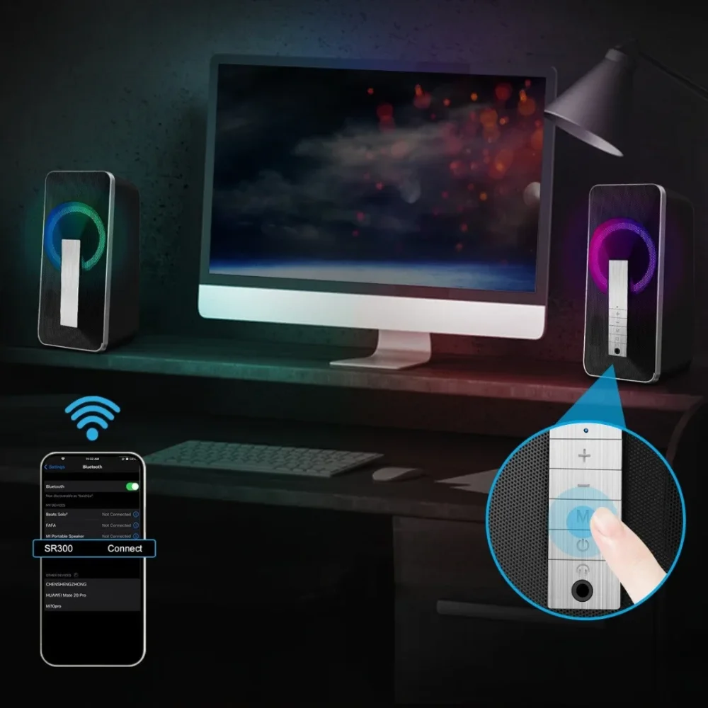 Equipped with 10W output power and 3-inch speaker drivers, the SR300 delivers rich bass, clear vocals, and balanced sound that enhances gaming, music, and movie experiences.