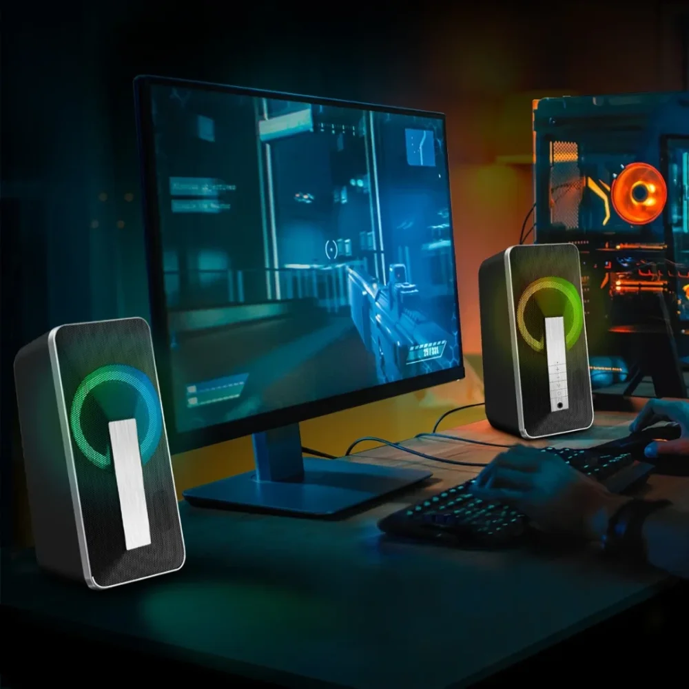 The multi-color RGB lighting effects add a visually engaging atmosphere to your desk, perfectly complementing gaming setups and multimedia environments.