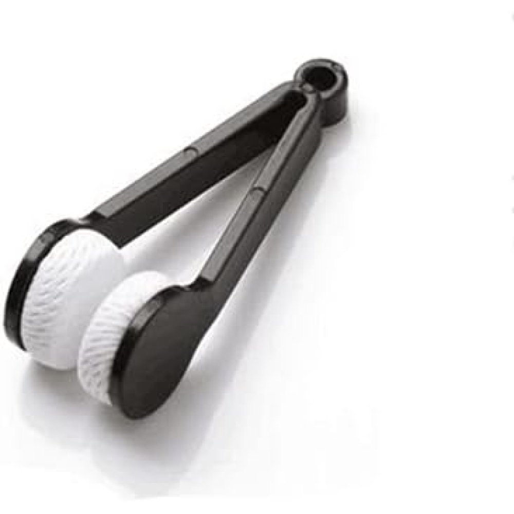 Specially designed carbon microfiber pads clean both sides of the lens simultaneously.