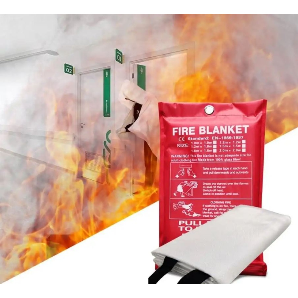 Features two black pull straps for fast deployment. Simply pull, unfold, and toss it over the fire or wrap it around your body for escape.
