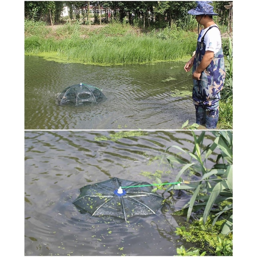 Capture fish, shrimp, crabs, and other aquatic creatures easily with this automatic folding Fishing Cage Umbrella Net. Designed for convenience, durability, and high efficiency, this net is ideal for both beginners and experienced fishermen.