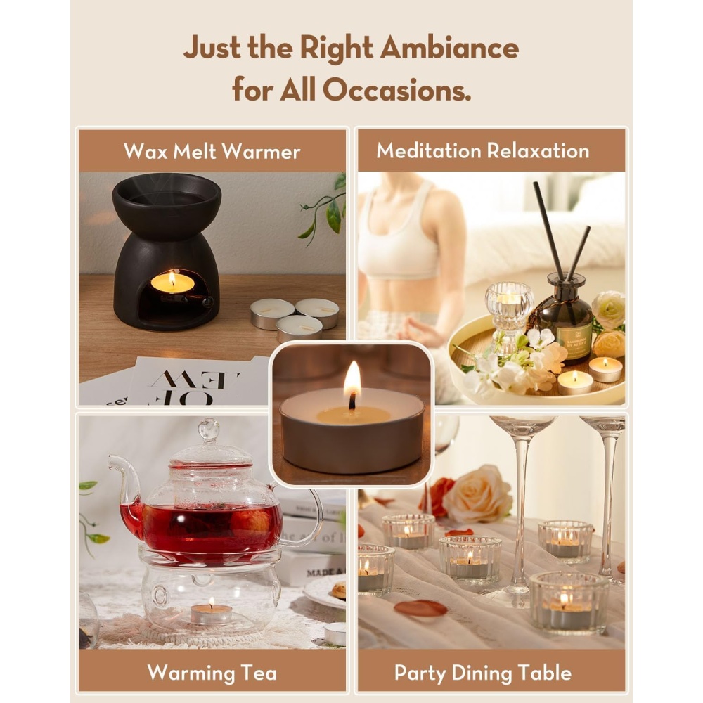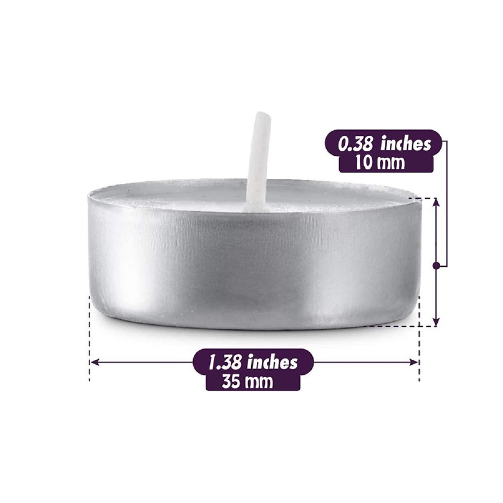 Each tealight burns for up to 3.5–4 hours, providing steady illumination.