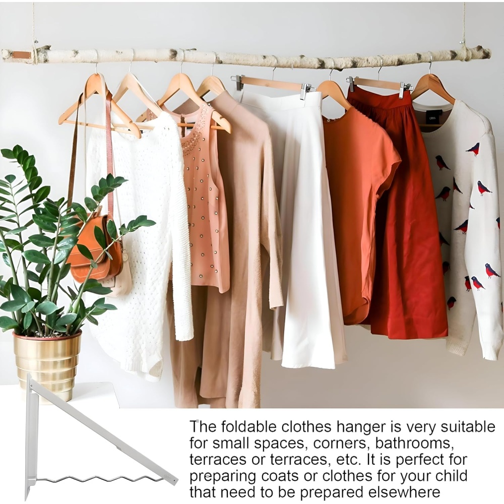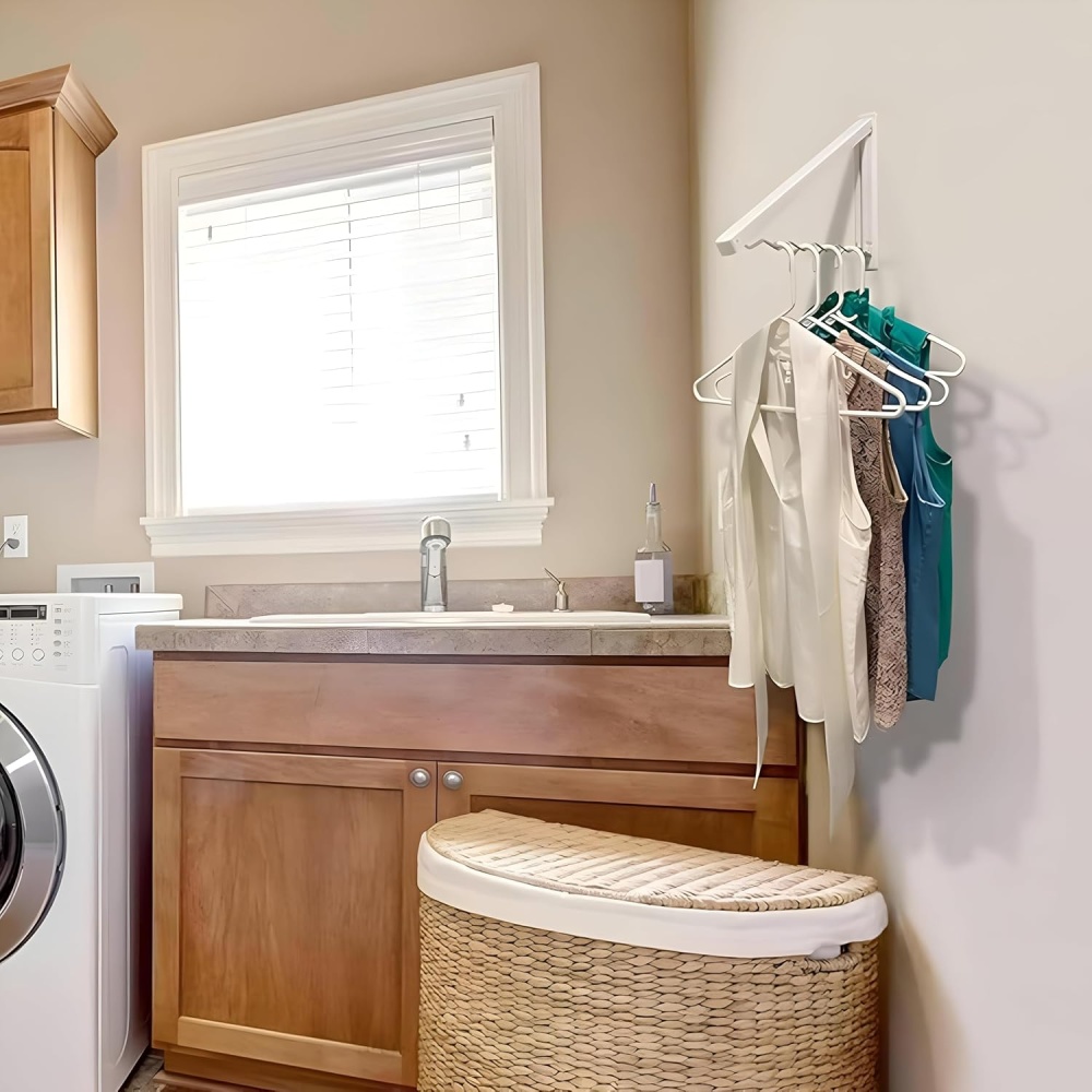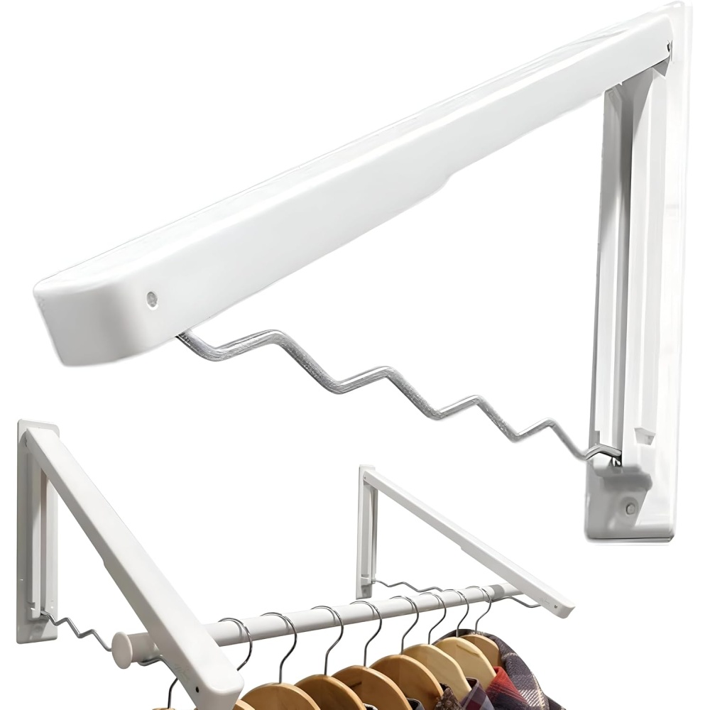 Folds flat against the wall when not in use to save space. Just unfold when you need to hang or dry clothes.