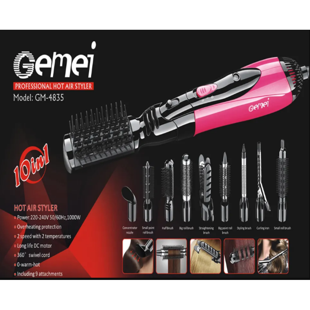 GEMEI 10 IN 1 Professional DC Motor Hair Dryer & Hair Styler