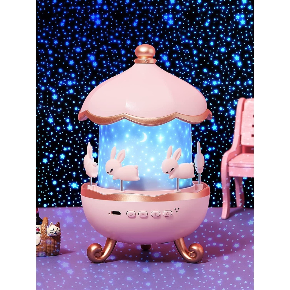 Introducing the enchanting Carousel Rabbit Night Light Projector – a delightful gift perfect for any occasion! This unique projector features a rotating carousel with 6 adorable rabbit figures that twirl, bringing the magic of a starry sky into your child’s room. Whether it’s for Christmas, Halloween, birthdays, or just because, this thoughtful and luxurious toy will captivate both boys and girls, making it the ideal gift for little ones and their loved ones alike.