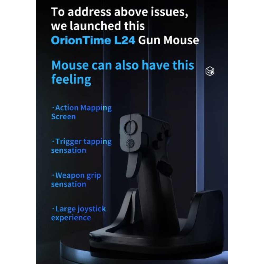 The Gun Style Gaming Mouse FPS OrionTime L24 offers precision and speed with an ergonomic design, perfect for FPS gamers. With a 4000 DPI adjustable sensitivity, five customizable buttons, and a touch trigger for immersive control, it provides a unique gaming experience. The mouse can be swung up and down for enhanced control, replicating gun aiming for added realism.