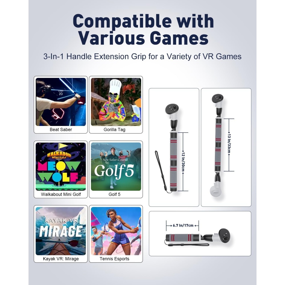 Enhances your grip length for better range and immersion, ideal for sword, golf, or fitness games.